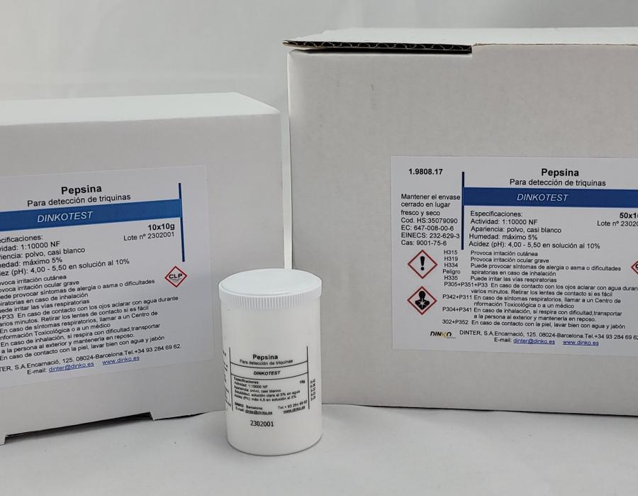 Pepsin NF 1:10000 suitable for digesting meat to extract any trichinae it may contain.